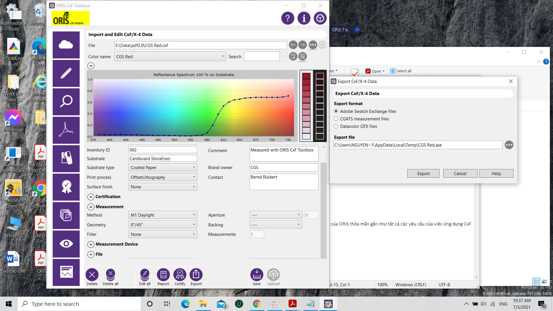 Câu hỏi tiếp theo là làm tất cả các việc trên như thế nào và chúng ta có phần mềm nào làm việc đó không . Hiện tại CxFtoolbox của ORIS thỏa mãn gần như tất cả các yêu cầu của việc ứng dụng CxF nó làm được đủ các yêu cầu như trên vừa nêu với CxF nhúng trong PDF/X4 . (Xem hình 3).