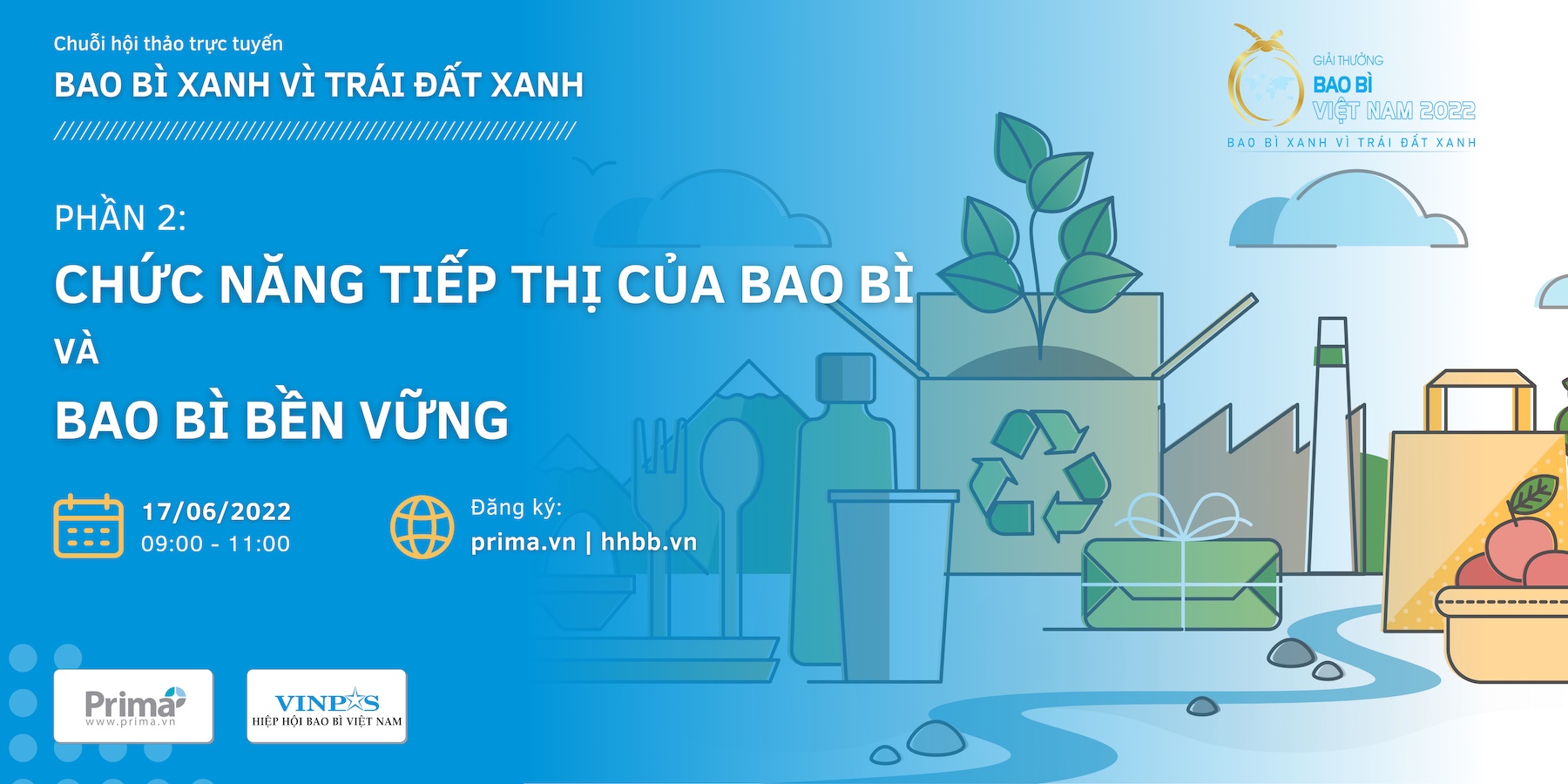 Tham dự hội thảo trực tuyến “BAO BÌ XANH VÌ TRÁI ĐẤT XANH – PHẦN 2: CHỨC NĂNG TIẾP THỊ CỦA BAO BÌ VÀ BAO BÌ BỀN VỮNG” do Học viện PrintMedia Việt Nam phối hợp cùng Hiệp hội Bao bì Việt Nam để cùng các chuyên gia trong lĩnh vực bao bì trao đổi về các chủ đề này.