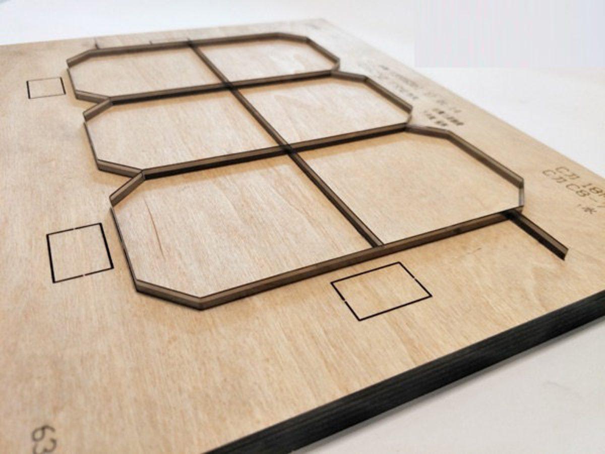 Đường nét của bản thiết kế thường được đốt vào bề mặt của bảng gỗ bằng máy cắt laser để có các đường viền chính xác hơn.