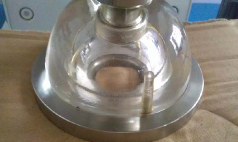Đặt một mẫu test lên miếng màng cao su và kẹp chặt vị trí xung quanh của mẫu test sao cho mẫu test có thể tự do nhô lên với miếng màng cao su. Khi chất lỏng bên trong được bơm vào với một tốc độ ổn định khiến cho miếng màng cao su nhô lên song song với mẫu test cho đến khi bị rách thủng, áp lực lớn nhất sẽ được ghi nhận để làm giá trị BST.